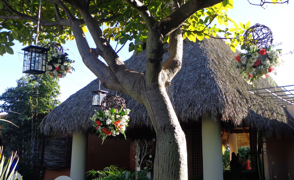 La palapa nos dá un lugar fresco y acogedor para la recepción de nuestros invitados, es única y sin igual. Los invitados pueden llegar hasta este lugar en sus coches y ser recibidos por el valet parking.