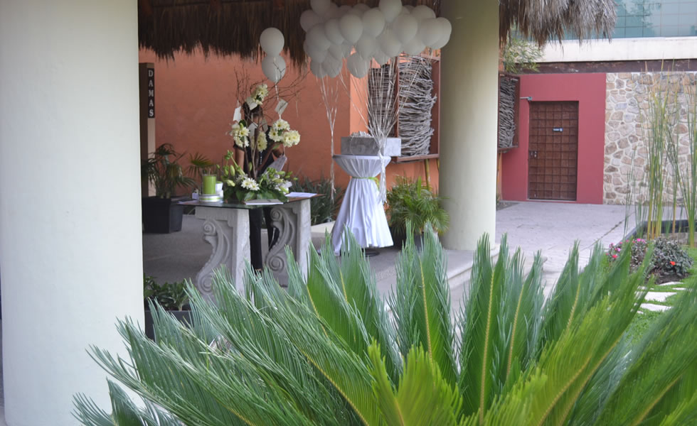 La palapa nos dá un lugar fresco y acogedor para la recepción de nuestros invitados, es única y sin igual. Los invitados pueden llegar hasta este lugar en sus coches y ser recibidos por el valet parking.